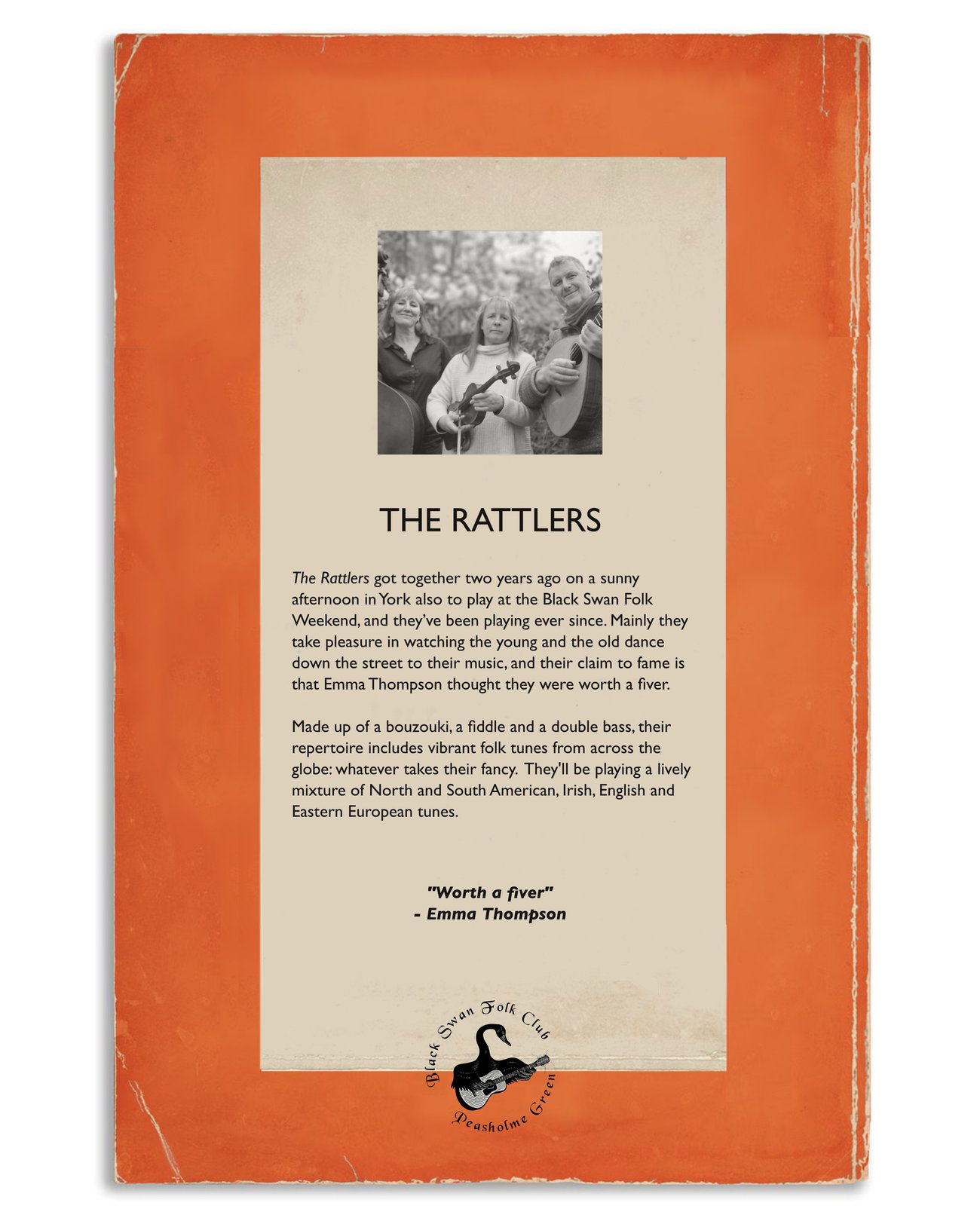 Double header at the legendary Black Swan Folk Club. I'll be joining York's Rattlers for a night of the finest folk music.